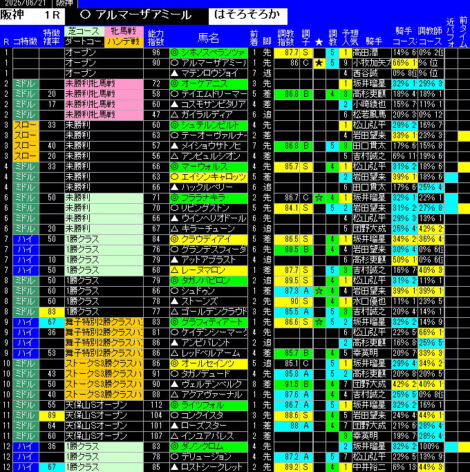 6月21日阪神特別戦全レースの◎予想!!平均配当表▼